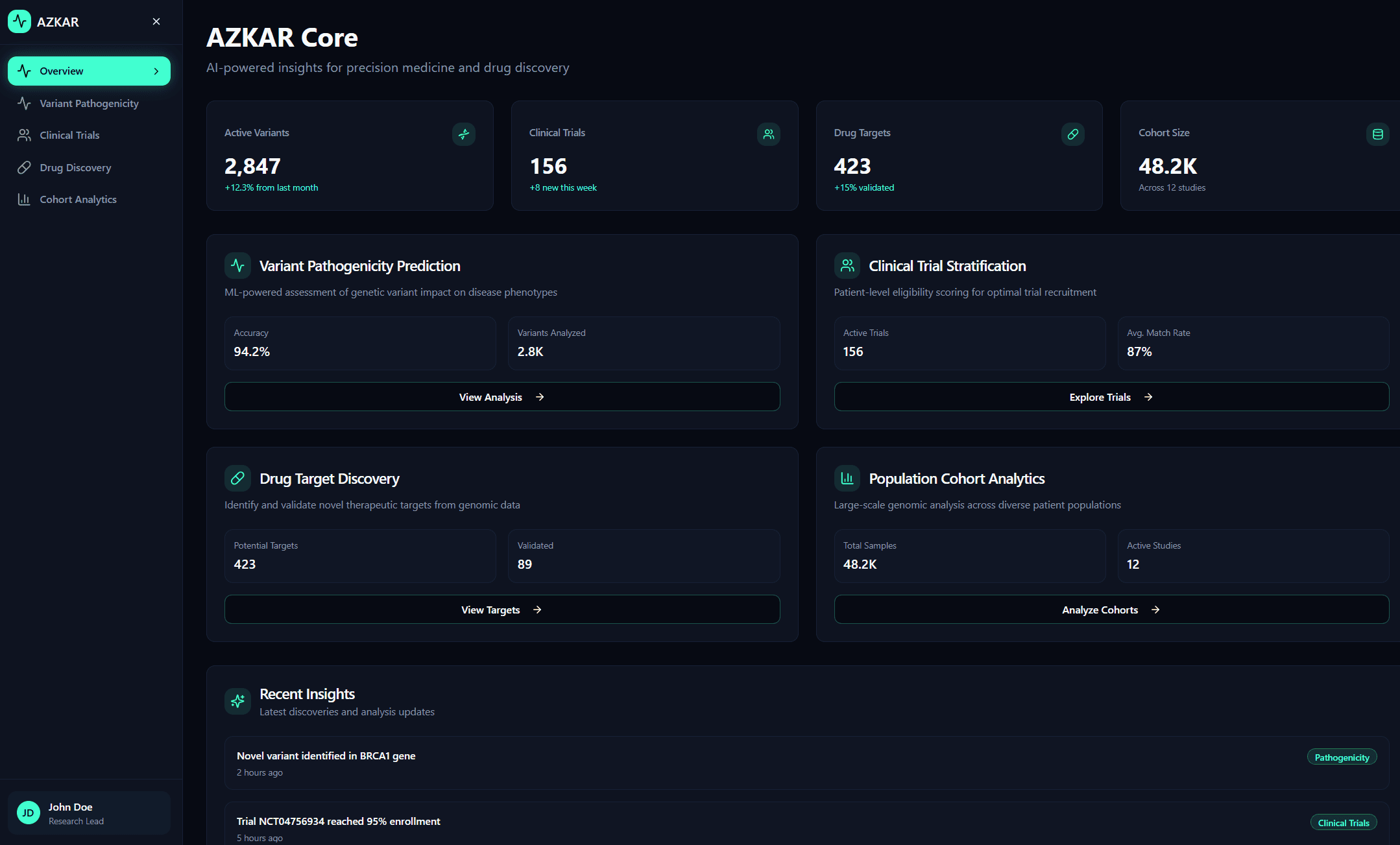 Rare disease diagnosis, drug trial stratification, population genetics, all scaled off the same core AZKAR engine.